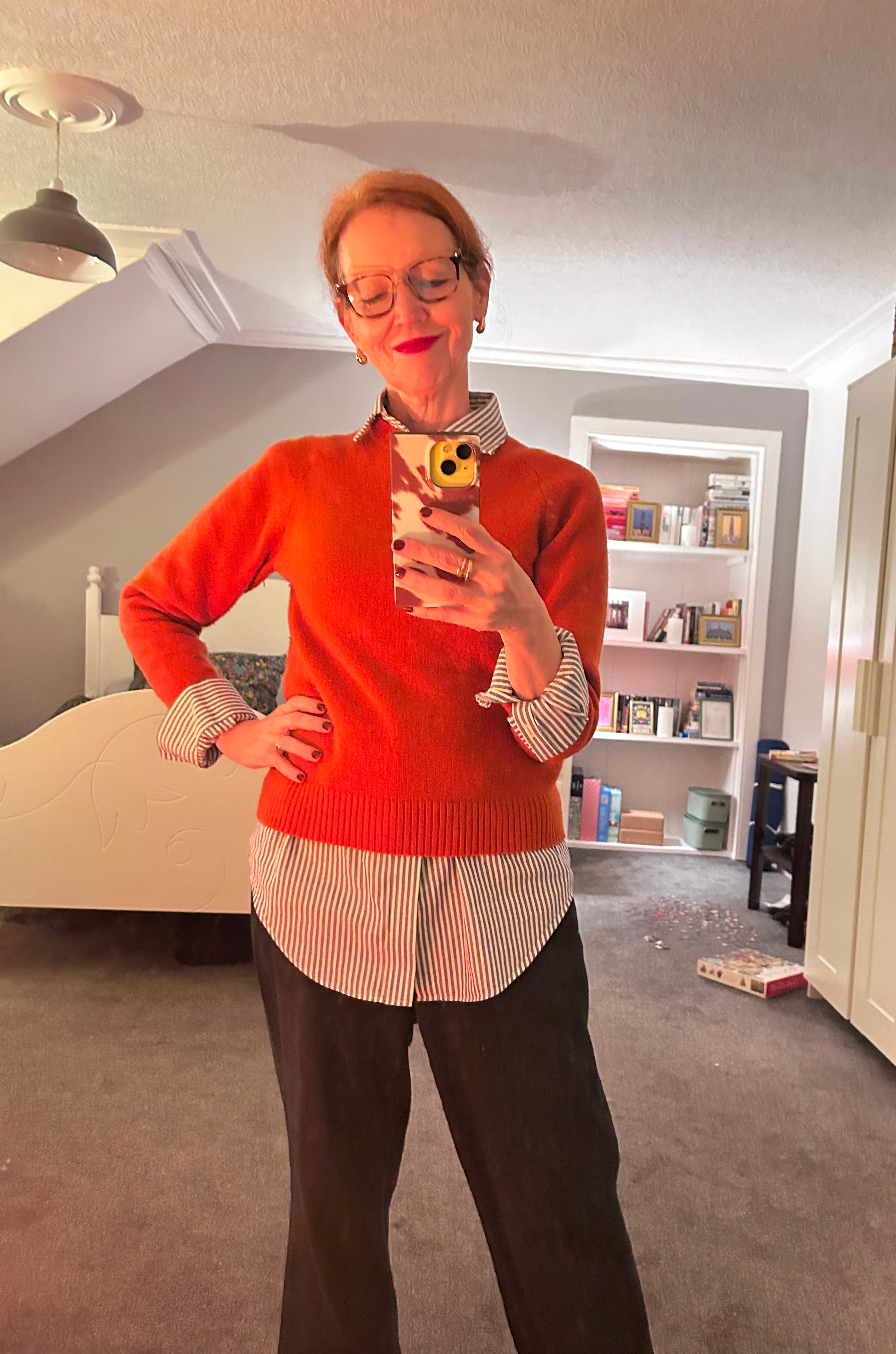 I have so, so SO many secondhand sweaters. Because I started thrifting in the 80s I can now spot good cashmere or a nice Irish knit from 20 feet away. It’s a joy and a curse because having an abundance of knitwear means that sometimes I forget to wear one for a while and then dig it out only to discover it was lunch for moths. All of which is to say I am here for this feature!